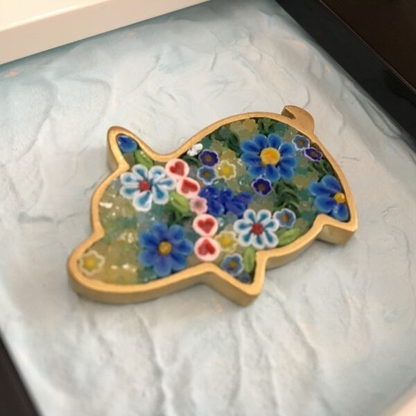 モザイク部分 ガラス・真鍮製枠・専用粘土